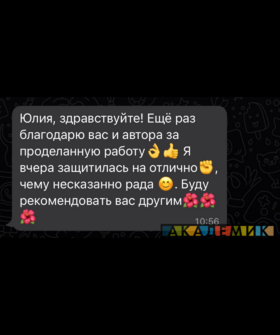Каждый заказ курирует персональный менеджер, который назначается клиенту и сопровождает его до окончательного завершения всех работ, включая устранение недоработок по замечаниям научного руководителя. Менеджер подбирает автора, отслеживает сроки и качество выполнения, а клиент может с ним в любой момент проконсультироваться по поводу любых возникающих вопросов по заказу.